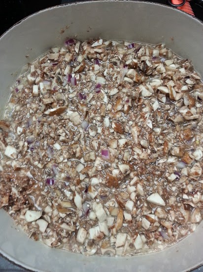 Once the mushroom mix is simmered and cooked (you are looking for the mushrooms to be fully cooked and soft)