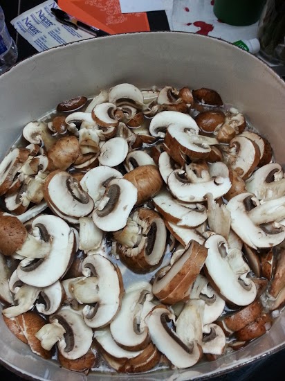 Cream of mushroom soup is a staple in our home for casseroles. I am not a fan of the canned stuff as you all know. This recipe will make about 7-8 pints. You will notice there are 2 different variations of it in this post. I will call them Round 1 and Round 2. My Father In Law was one of my testers. His taste testing pallet was not impressed with the small size of the mushrooms in Round 1 (I used the food processor). He recommended that I make a modification to the soup by making the mushrooms bigger. So, I did just that. He was very pleased with Round 2. You will also notice that I used shallots (instead of onions) and beef stock (instead of chicken stock) in Round 2. I did it on purpose to show that you can modify the recipe easily. Both soups taste incredible! I have never been a fan of eating cream of mushroom soup as a meal….This recipe is having me rethink that.