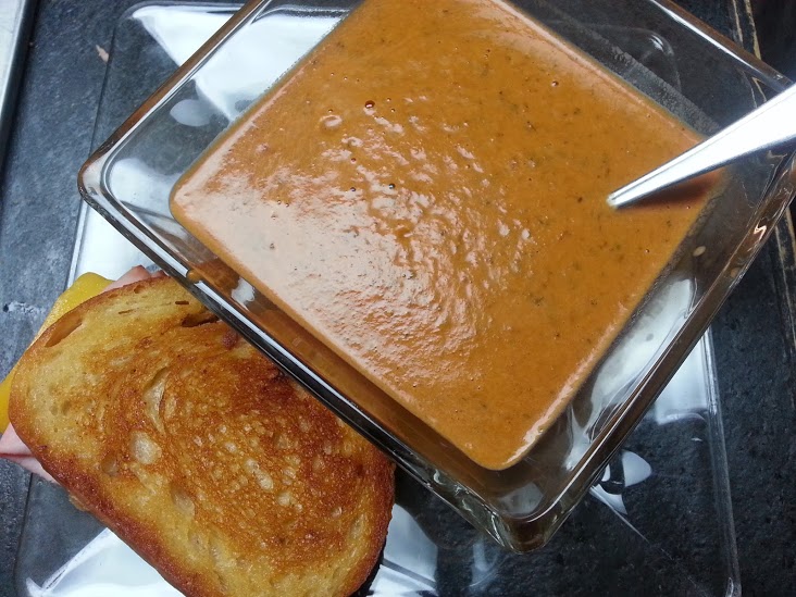 My family LOVES tomato soup with grilled cheese. Just like so many other things we gave up when we went to the world of unprocessed, we gave up the canned red stuff. Creating a recipe that would make giving up the red molten lava liquid worth it was not easy. The first attempt tasted like tomatoes heated up. YUM right? Another attempt tasted like water down tomato milk. YUM again! I knew I was on the right path. My family was incredible at trying to humor me with each new creation. It was almost as funny as the homemade toothpaste! Yea, we buy our toothpaste. I was begged to never make toothpaste again! This recipe though I finally got right. Here it is. Hope you enjoy it!