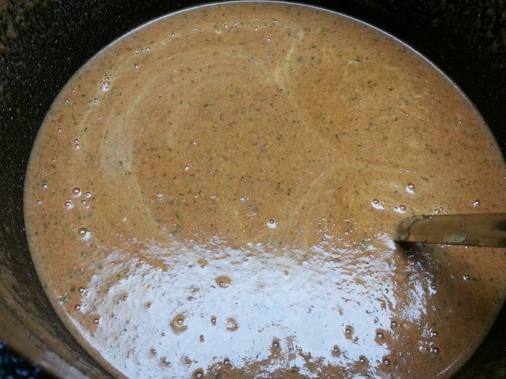In the pot add the tomatoes, stock, sauteed garlic and onion (if using fresh) if not you will add the butter, onion powder, garlic powder, salt, pepper, parsley, dill.