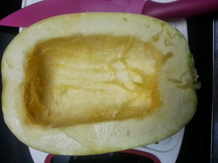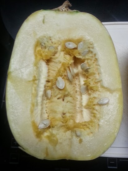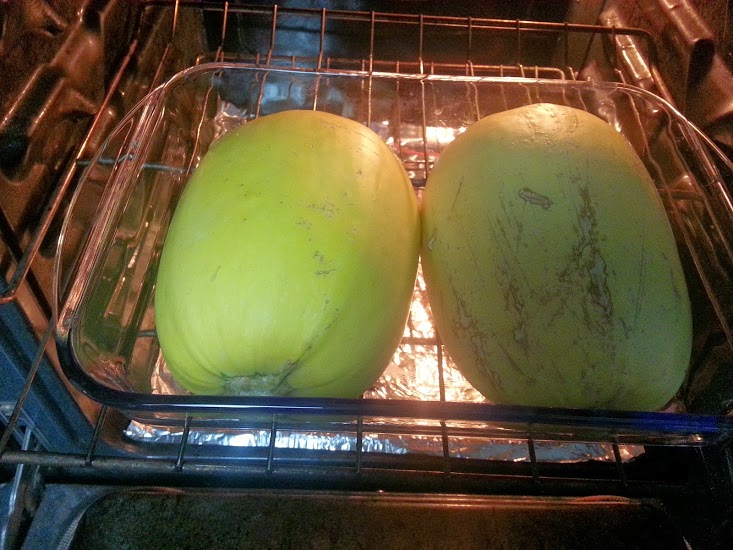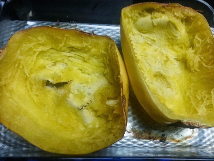 Both recipes begin with baking the spaghetti squash, so we will start with that…