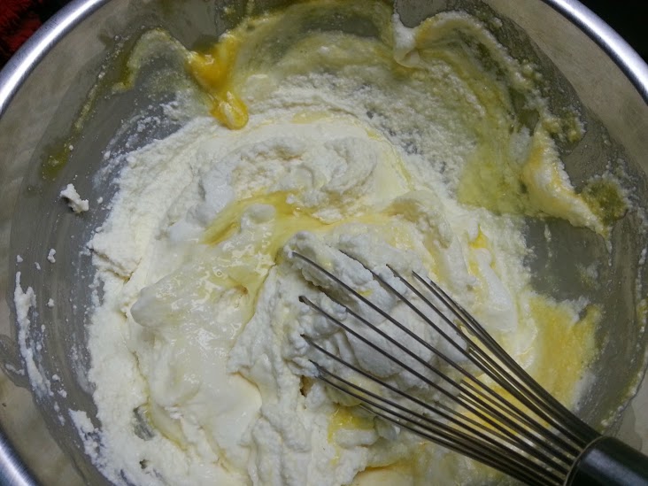 While the meat is browning put the ricotta and eggs in a bowl and whisk until well blended.