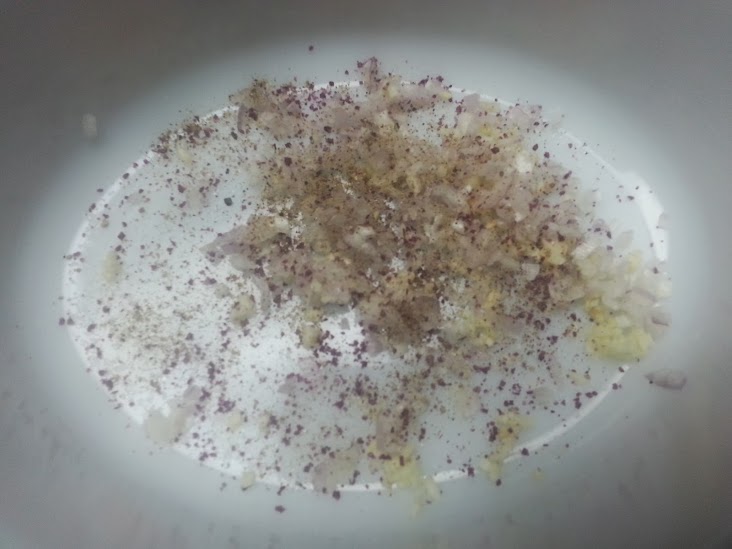 Prepare the pasta or rice. Add the butter and some seasonings to it. Set aside. Mince garlic, chop onions / shallots and place in baking dish.