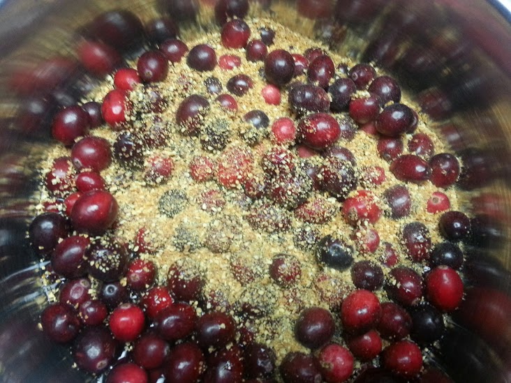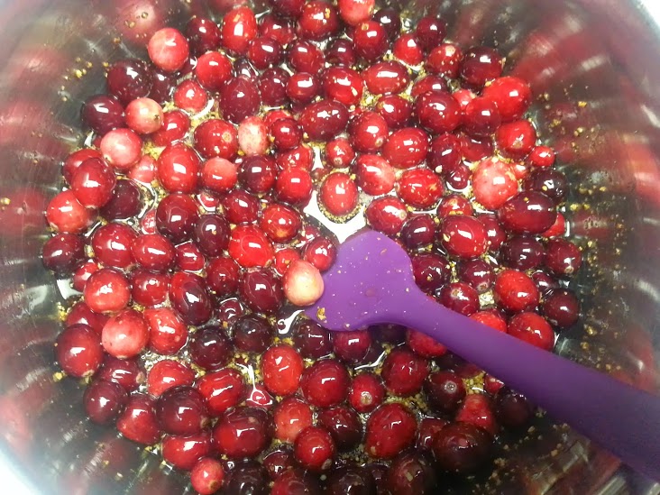 Put the cranberries in the pot and add the maple syrup. If you want a sweeter cranberry sauce add the 1 1/2 cups of maple syrup. If you want it less sweet, add 1 cup of maple syrup. The choice is yours.