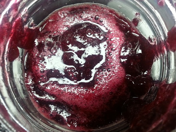 Next strain the cranberries through a strainer into a container until the seeds and pulp are the only thing left in the strainer.