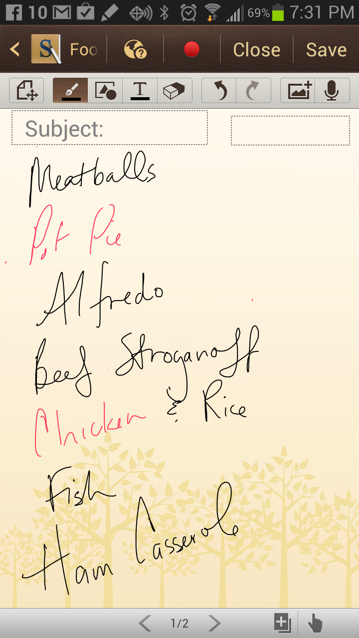 Page 1 on the app is for the menu. Page 2 is for my shopping list. Don’t have an a nifty phone app? Use a notebook. Works just as well. Just write it down!