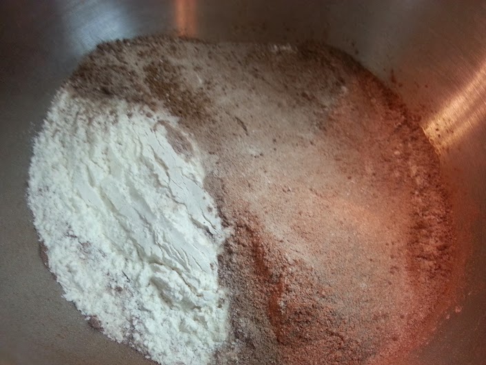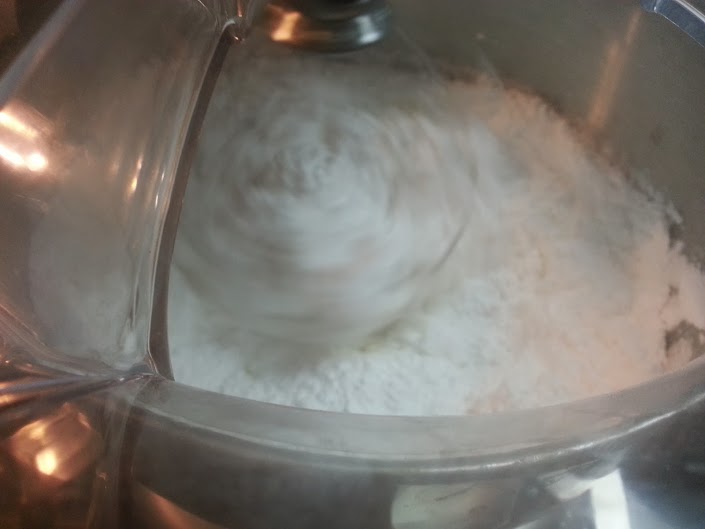Sift all the dry ingredients together in a mixing bowl (I did mine in my stand mixer’s bowl). If you do not have a sifter, use a whisk to combine and separate the dry ingredients.
