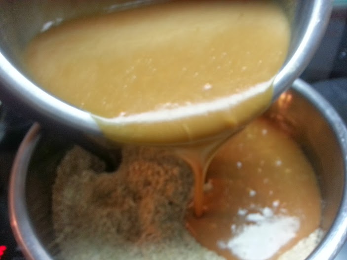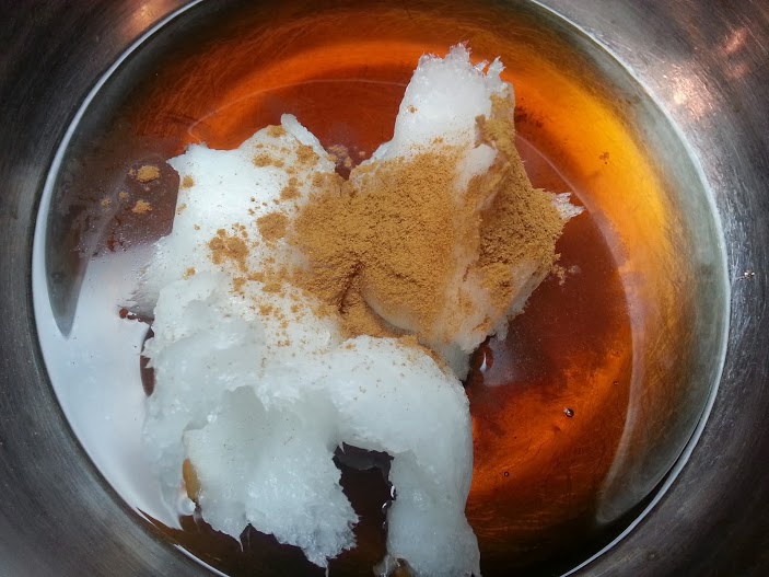 In a pot add the maple syrup, the vanilla and almond extracts, oil, and cinnamon.