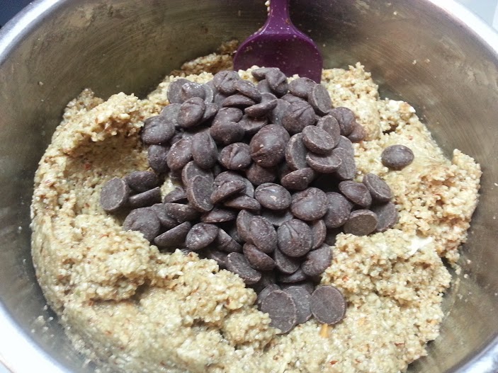 Why didn’t you just add them in the first time you mixed all the ingredients together? Because it was freaking hot, like molten lava hot! Chips would have melted immediately. Now, if you are all kinds of good with that? Get on with your bad ass self you rebel! For those that choose to wait a few to add the chips….you can either wait until the granola mix cools close to room temp or just until it cools enough to NOT melt the chips completely. Being the semi rebels this time, we decided to wait until it was semi cool. This is only because I was trying to find a measuring cup to actually give you a measurement on the chips. I am usually the dump, stir, and decide visually if it needs more kinda person. But I decided to try it the way MOST people do things. I am proud of myself! I still prefer my rebel method of cooking MUCH better then using the measuring cups.