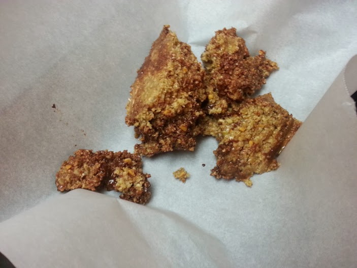 Lay a HUGE sheet of parchment paper in the baking dish. Take the mix and dump it onto the parchment paper in the baking dish. Don’t panic when you discover that there is STILL oat mix that escaped the mixing with the liquids! Just mix it in like the pro you are! I will keep your secret. If you actually got it all mixed together…AGAIN, NO ONE LIKES A SHOW OFF!!!! I AM JUST SAYING!!!!
