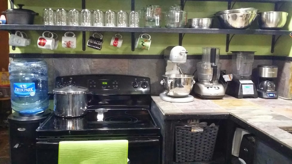 The kitchen color I am so not in LOVE with. We named it Kermit The Frog Green.