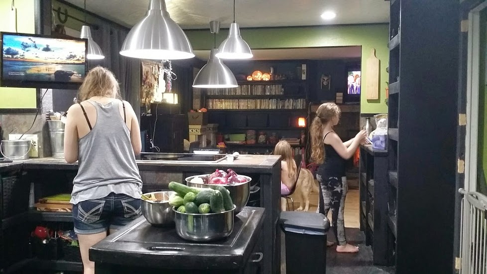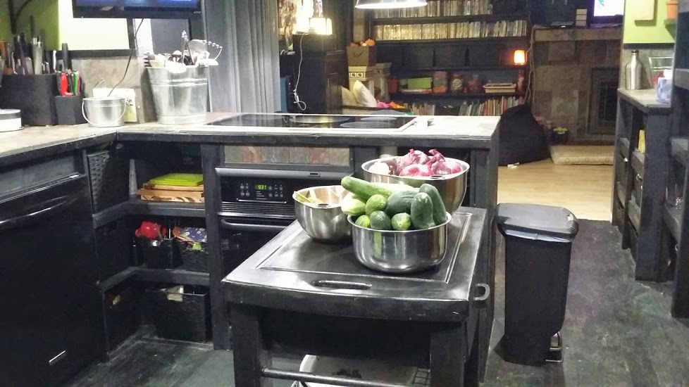 Top of the butcher block. Prepped with yummy stuff to make homemade pickles.
