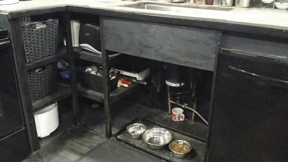 We left under the sink area open so that I could have a place for the dogs water and food. I like the look of it personally.