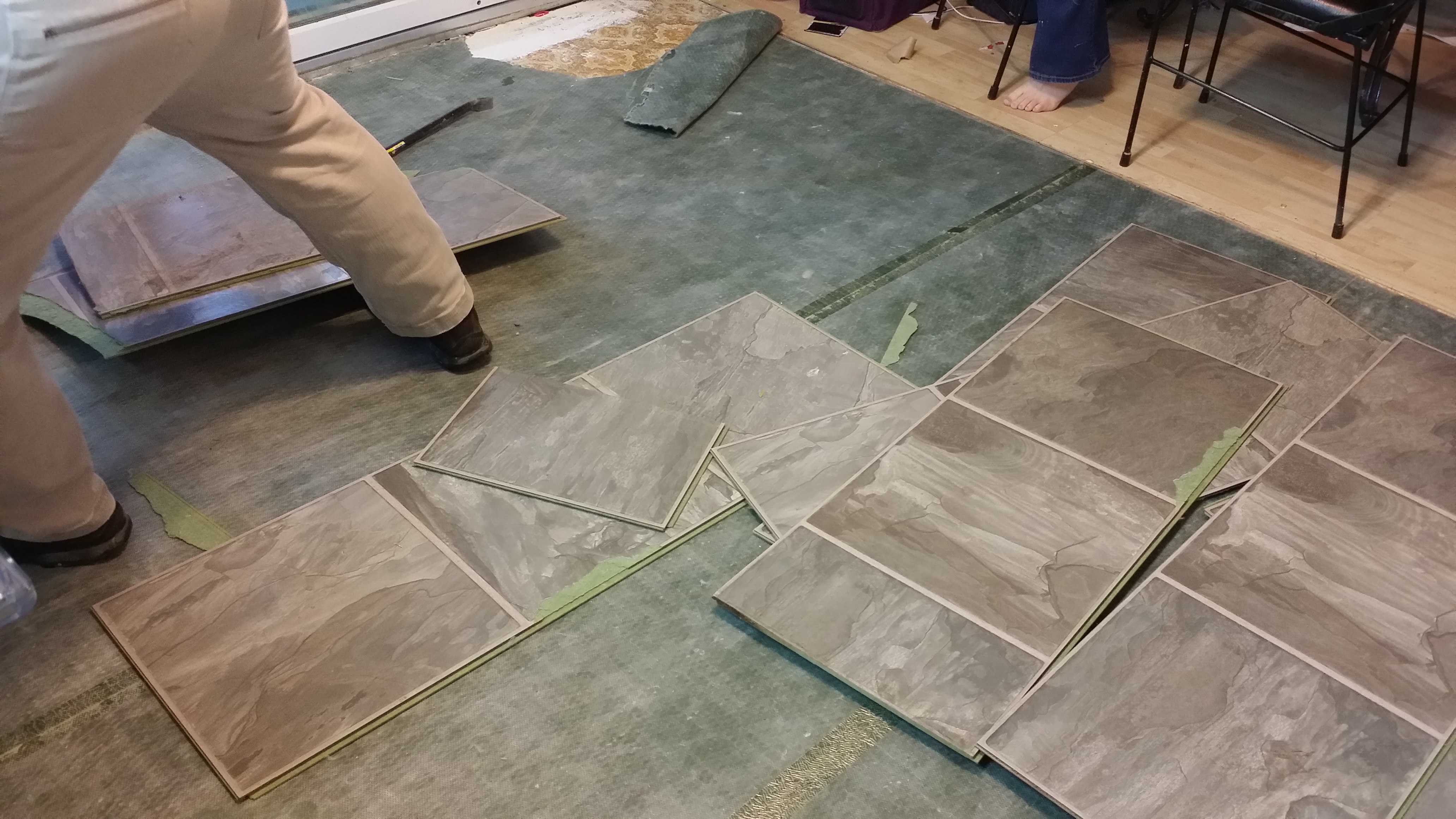 This is the flooring in the kitchen before. It was a slate look click in place flooring. I could never get it to look clean no matter what I used on it....