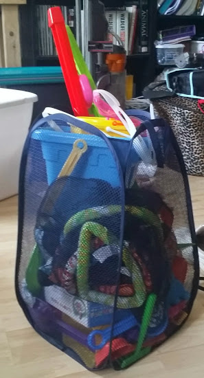 Again this one is also a no brainer. It is something EVERY kid loves to play with in the sand. I was able to score ours at over 50% off of the regular pricing. Making my dollar stretch farther. MIL had a collapsible hamper for me to throw all the beach toys in so that they can be carried down to the beach easier and they can dry quickly.