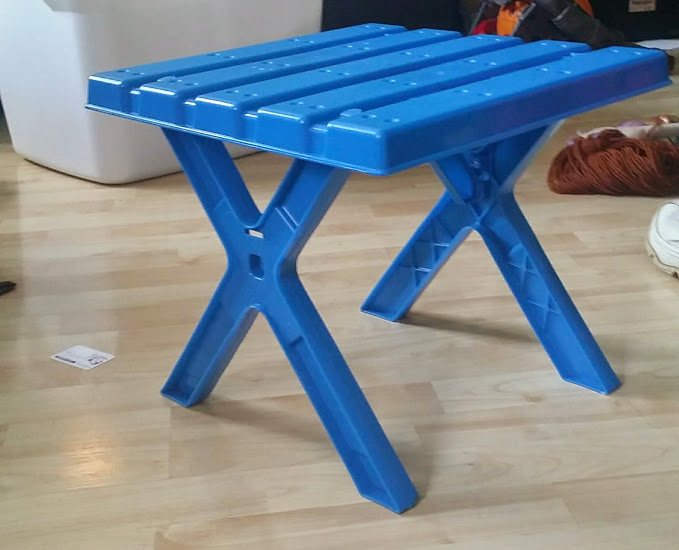 I wanted to find super cheap little side tables to use in the tent or next to our beach chairs. These would serve as a great place to put our drinks, snacks, kids toys, books, etc instead of the sand. I found super cheap little tables at Toys R Us for just under $5. They sit low to the ground, are made of really cheap plastic and collapse flat. If they survive this yr at the beach, for that price…I am a very happy beach bum!