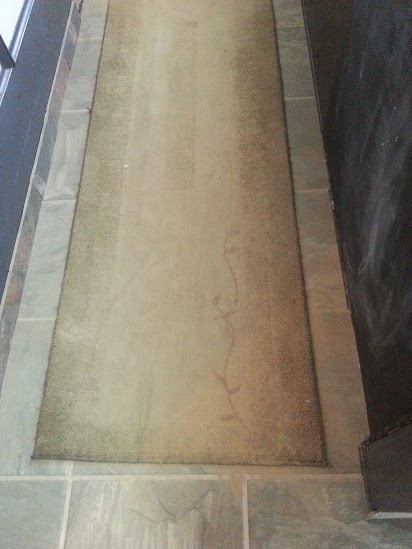 By the next morning it was obvious that this stuff was coming up DAYS early instead of the recommended time of about 3 weeks or so! All my furniture was now brown. Every time we moved we blew up a HUGE puff of brown dust. My 4 yr old was at the worst height for it. Hubby grabbed his shop vac and went to town on it. We bathed the dogs and the kitten, who freakishly purred through the entire bath!!!