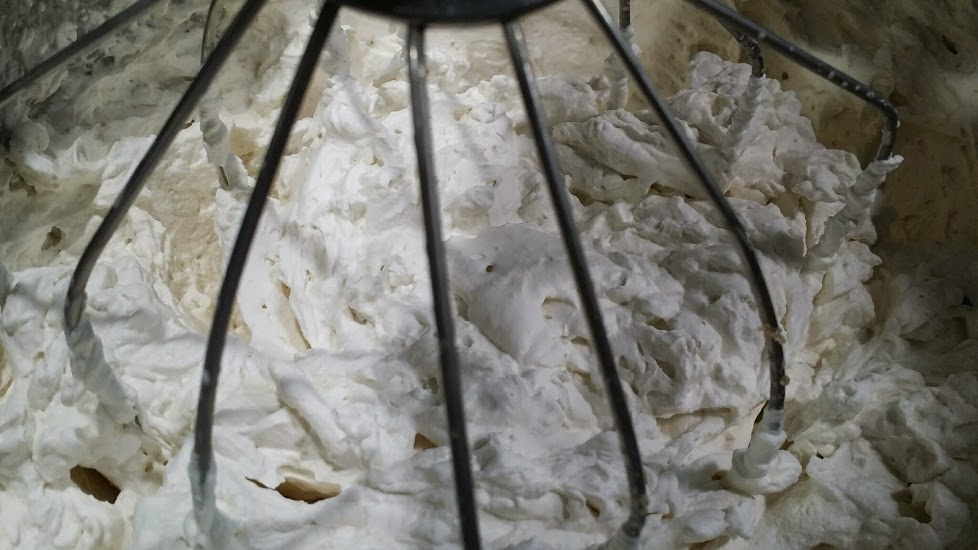 2. Whip it until it forms peaks on top.