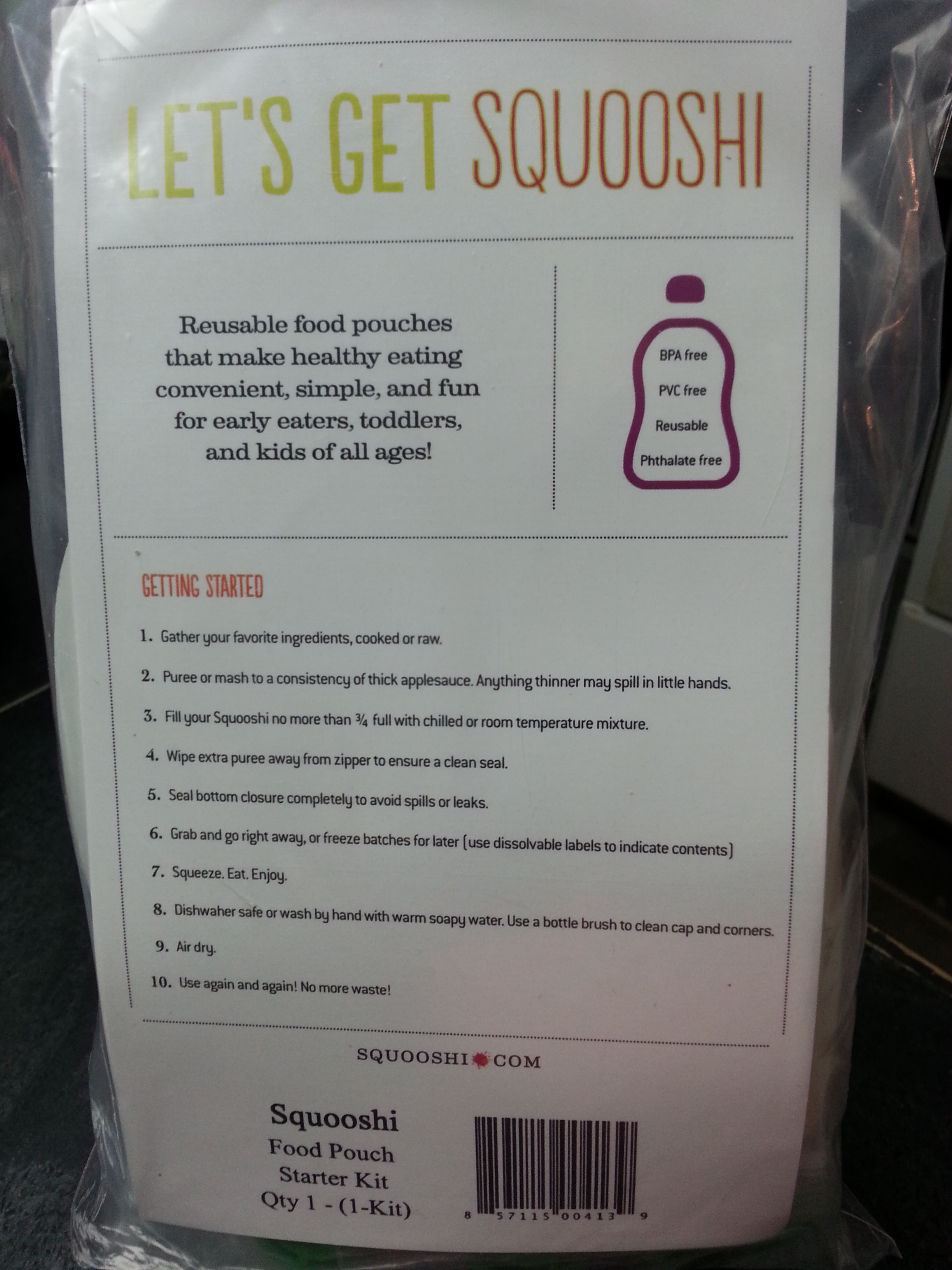As many of you know, we do not eat out. So, when we are running errands, I always try and pack something for us to eat in case we get hungry. I opt for reusable food pouches.  Squooshi being my favorite.