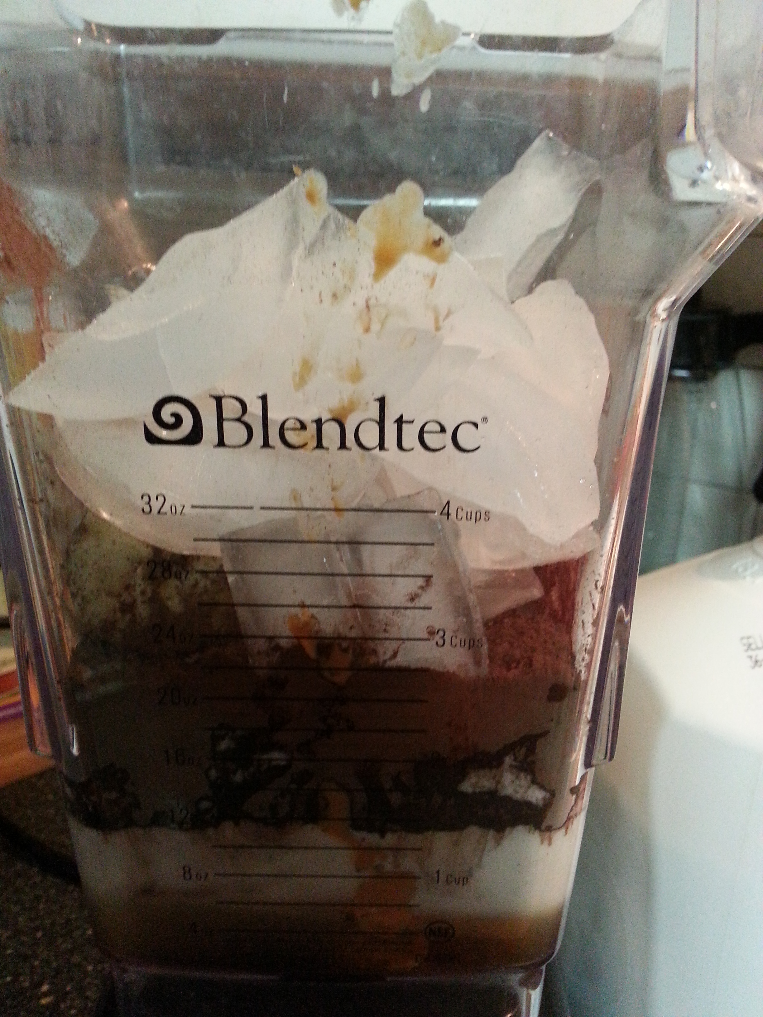 Peanut butter, banana, and dark cocoa smoothie getting ready to be blended…