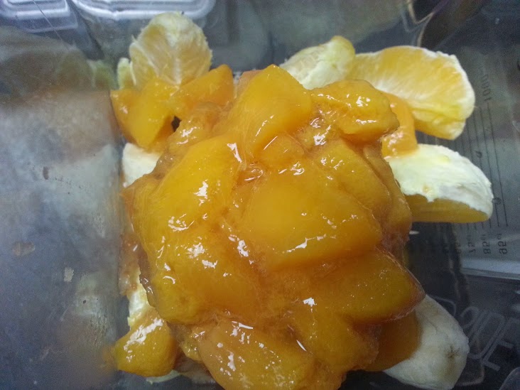 Peanut butter, banana, and dark cocoa smoothie getting ready to be blended...