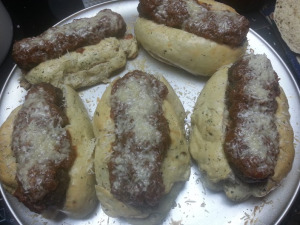 Note: If you are using pre-cooked meatballs, sauce, and bread this recipe will only take about 20 minutes to make. If you are making everything from scratch, it will take you upwards of 2 hours to make this meal.